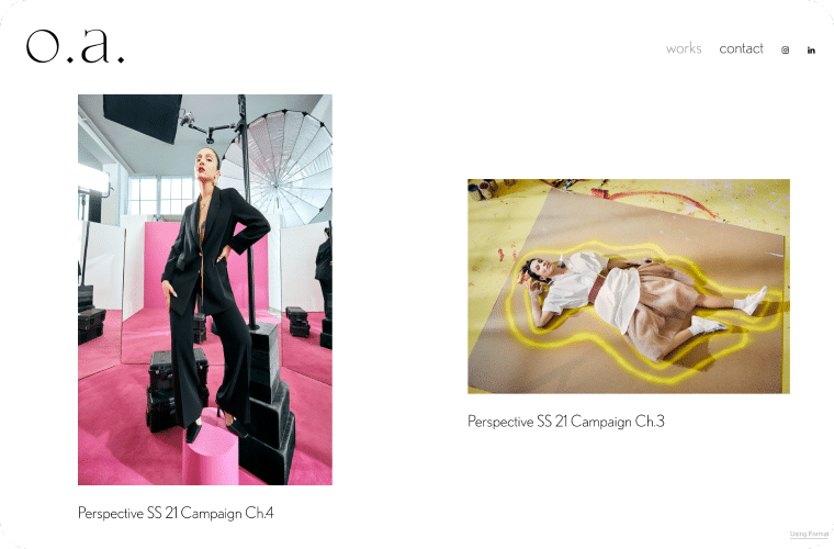 “As a fashion designer and artist, I have loved using Format to showcase my work over the past 10 years. When we launched our product brand, JAW Studio, setting up our online shop using the Store feature was intuitive and seamless. My Format site has been incredibly helpful in sharing my designs, and it’s been the perfect portfolio to highlight my evolving fashion career.”